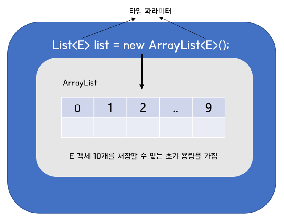 ArrayList와 동일하게 타입 파라미터에 저장할 객체타입을 지정하면 된다! String객체라면 String넣으면 되겠졍?