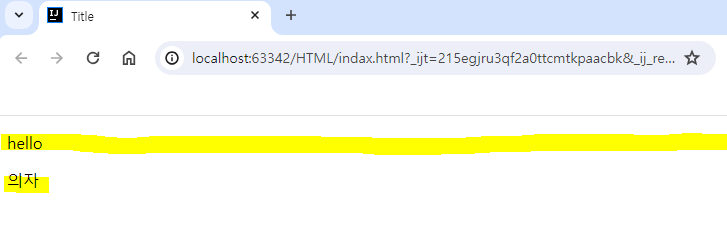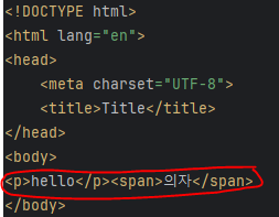 <p> hello 의 경우, 표시와 같이 욕심쟁이라 칸을 다 차지하고 <span> 의자 의 경우, 문장, 단어 같은 작은 부분 사용가능