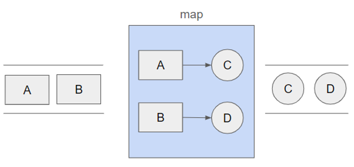 - 스트림의 요소를 하나씩 특정 값으로 변환한다 변환된 값은 새로운 스트림으로 만들어진다!