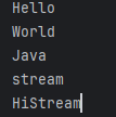 List<String> list = Arrays.asList("Hello World", "Java stream", "HiStream");