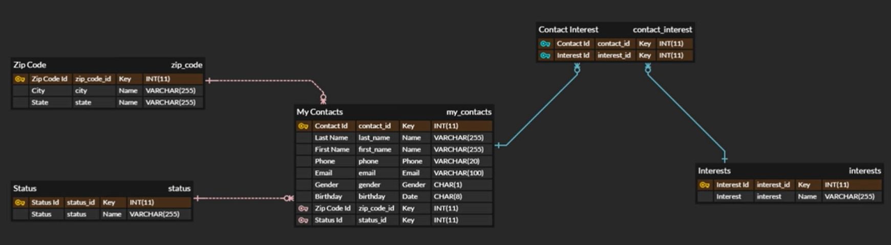 여러개의 테이블이 존재, 테이블 사이의 관계를 시각적 표현