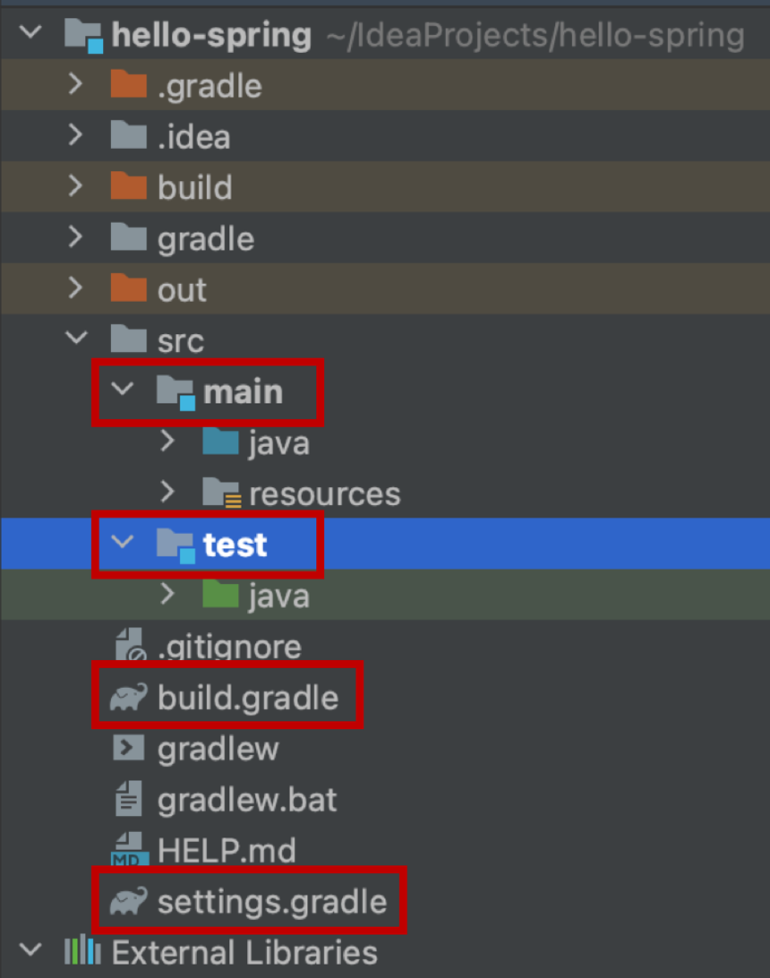 - main 디렉터리는 java , resourcecs로 구성되어있다 내가 작성한 코드가 들어있는 디렉터리는 java!