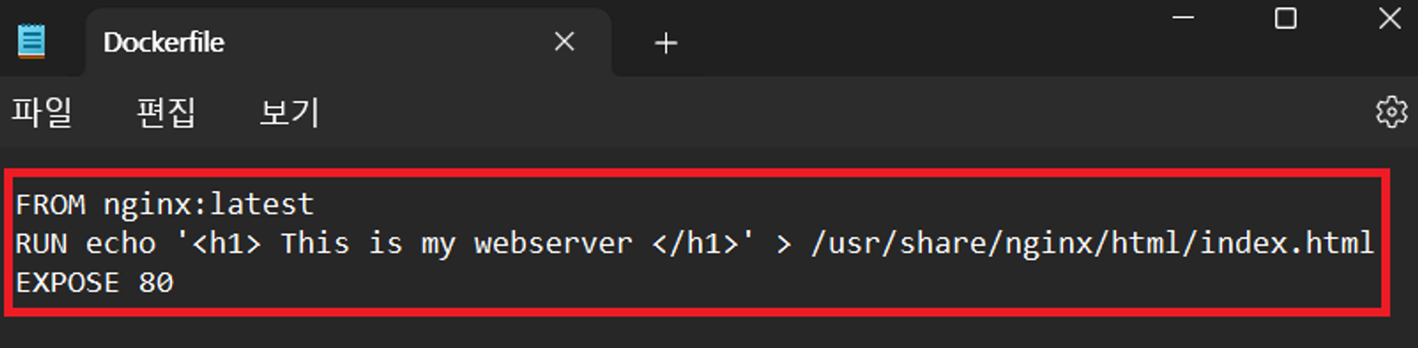 그런데 이런 과정이 너무 번거롭기 때문에 !! dockerfile를 이용하여