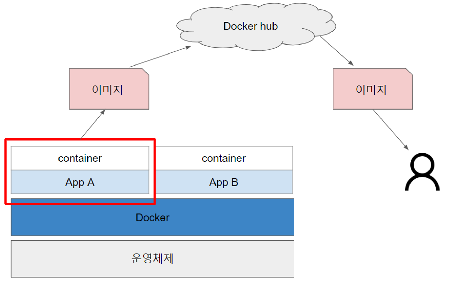 내가 만든 a앱을 누군가에게 공유하려면 컨테이너를 이미지라는 것으로 저장하고 누군가가 사용하는 방식!