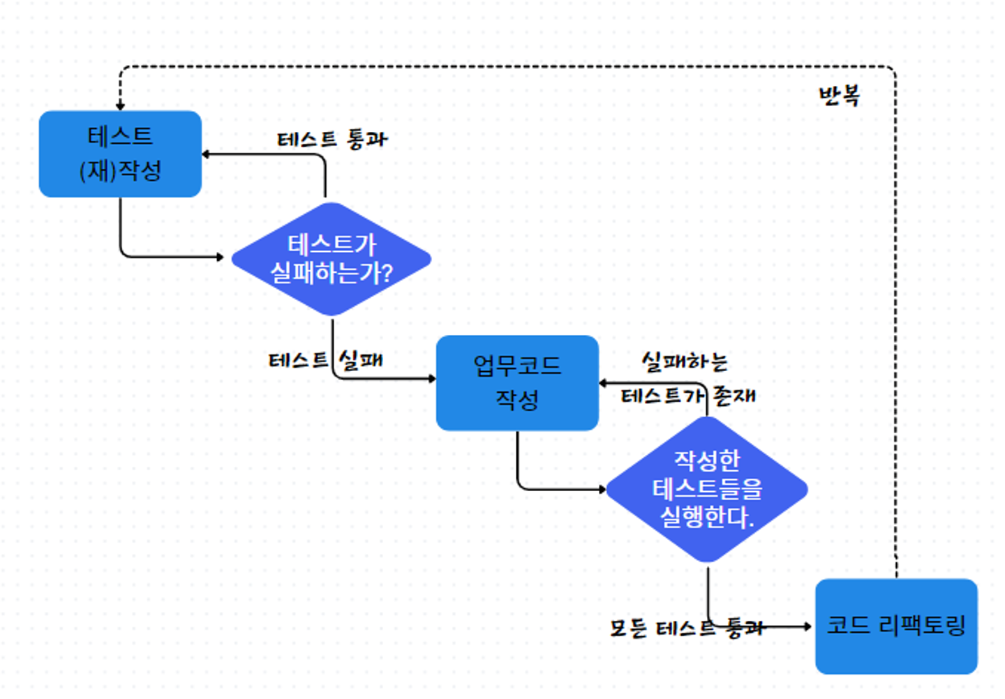 TDD를 이용한 개발은 크게 질문 > 응답 > 정제 단계를 반복적으로 이루어진다.